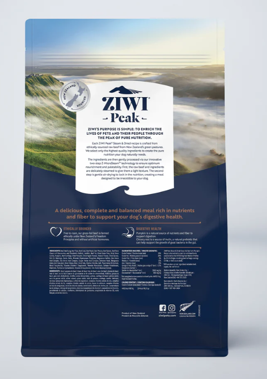 - ZIWI selects only the highest quality ingredients to create the pure nutrition your dog naturally needs. A delicious, complete, and balanced meal rich in nutrients and fibre to support your dog’s digestive health.