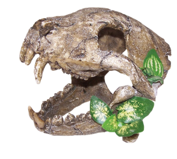 Skull With Big Canines – Large. 195 x 155 x 140 mm.  Add a splash of colour and design to enclosures with the new Coolibah collection.  This range of decorative furniture can be used as an alternative to real rocks and plants. They look realistic but are light weight, durable and easy to clean.  As a bonus – most of this range can also be submerged and used in the aquarium!