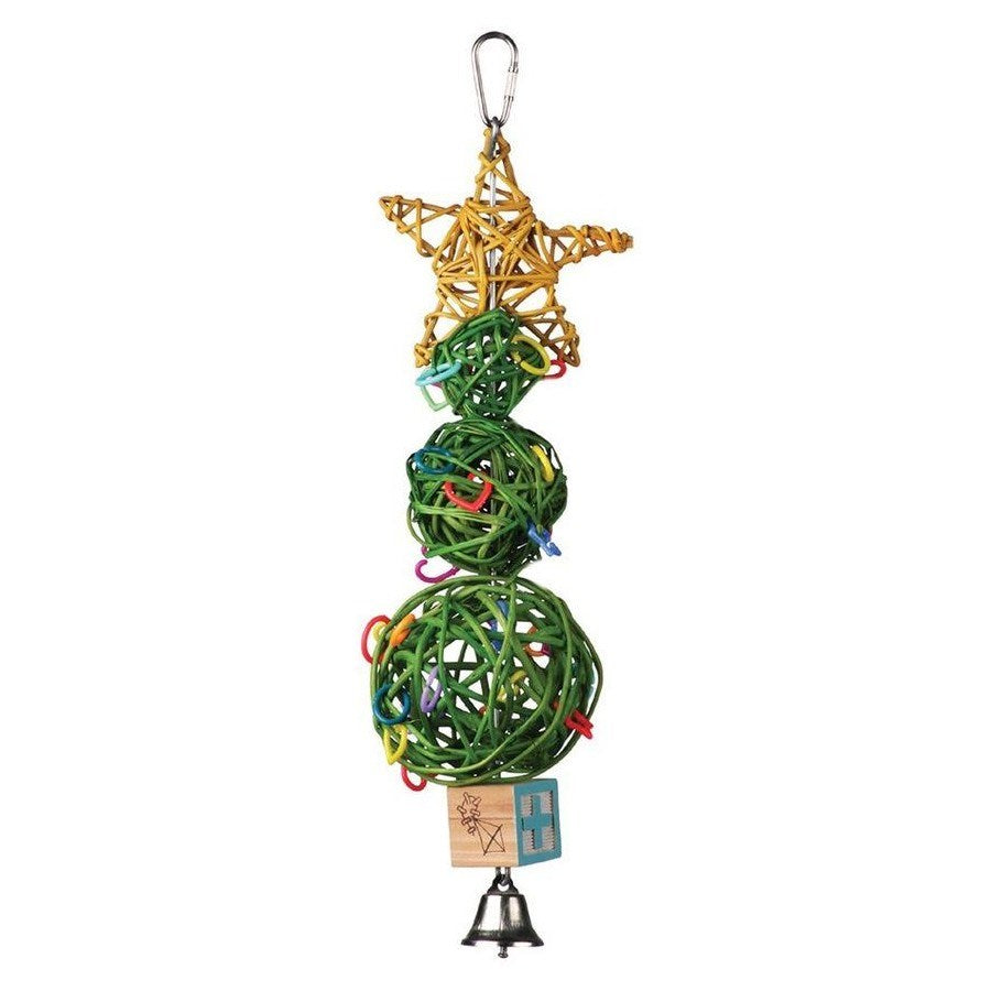 Celebrate the festive season with the Superbird Vine Ball Xmas Tree, a colourful and chewable holiday-themed toy made to delight medium to large birds. Shaped like a Christmas tree, this engaging toy features a stack of natural vine balls, festively decorated with colourful beads, crinkle paper, and other fun textures to shred, chew, and explore. Hang it in your bird’s cage to add a touch of seasonal spirit while also supporting healthy beak activity and mental stimulation.
